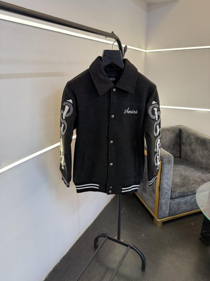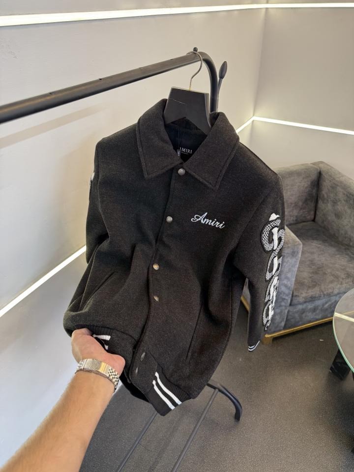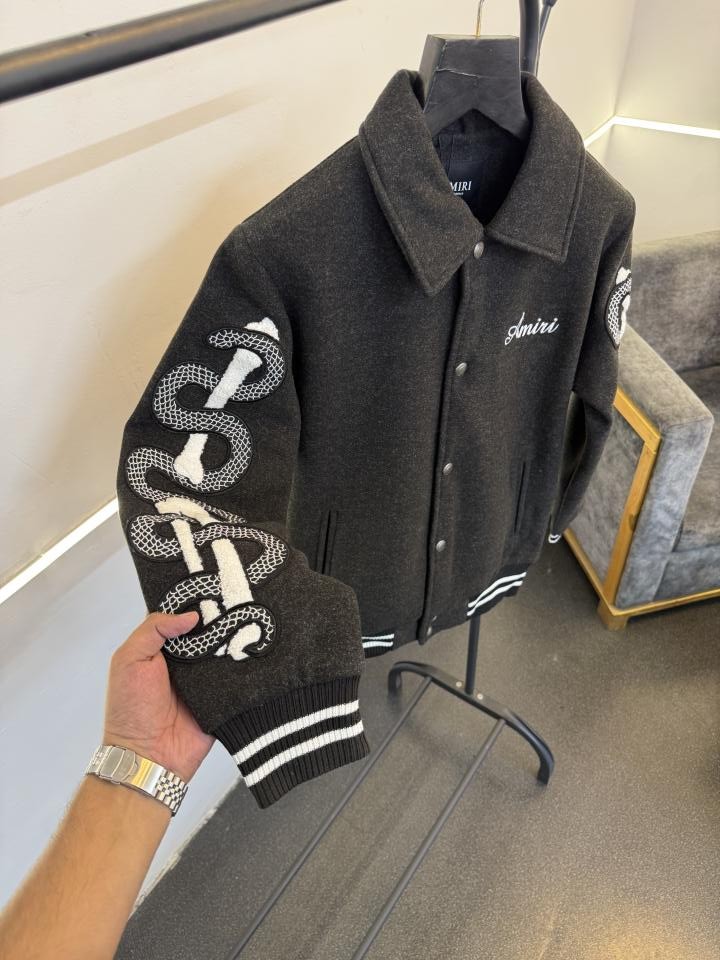 ? *shubmangill fame article amiri bone snake varsity jacket available with wool blend imported fabric with brand snap buttons and front embroidery brand on chest now in stock*?