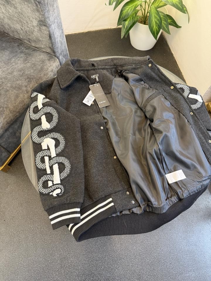 Amir i grey snake bone imported varsity jacket with brand snap button as per store
