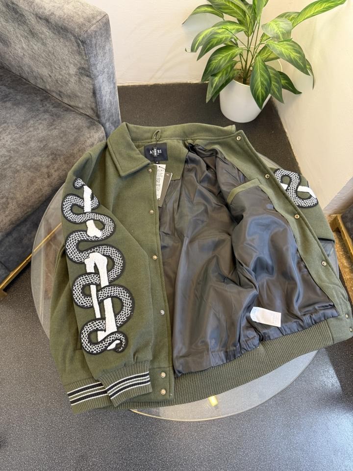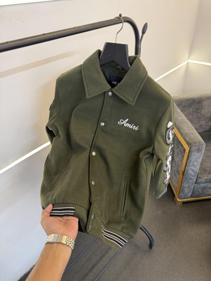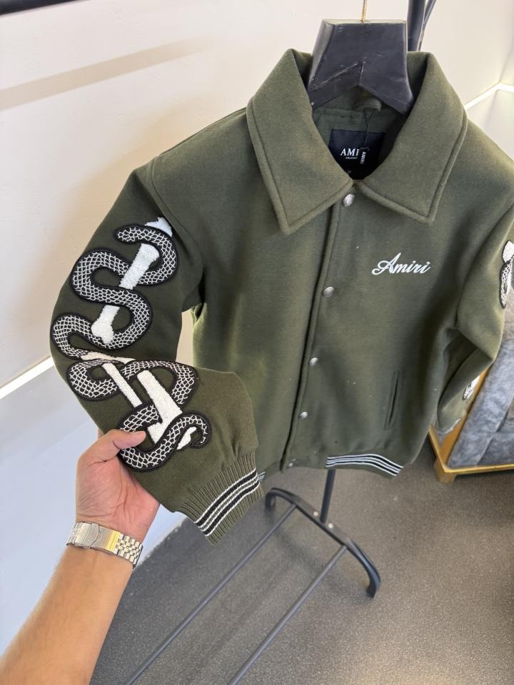 Amir i olive snake bone imported varsity jacket with brand snap button as per store