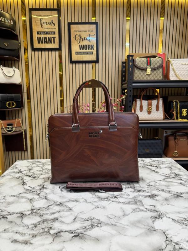 Mont Blanc Polished Premium Quality Laptop Bag With Strap (Brown)
